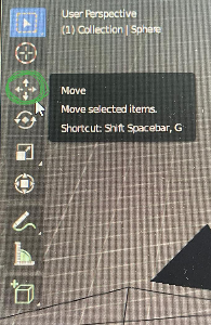 그래서 UV Sphere을 정육면체 밖으로 꺼내주어야 한다. 즉, '이동' 기능을 사용해야 한다.