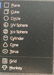 - Add > Mesh > (다양한 기본 물체 생성)