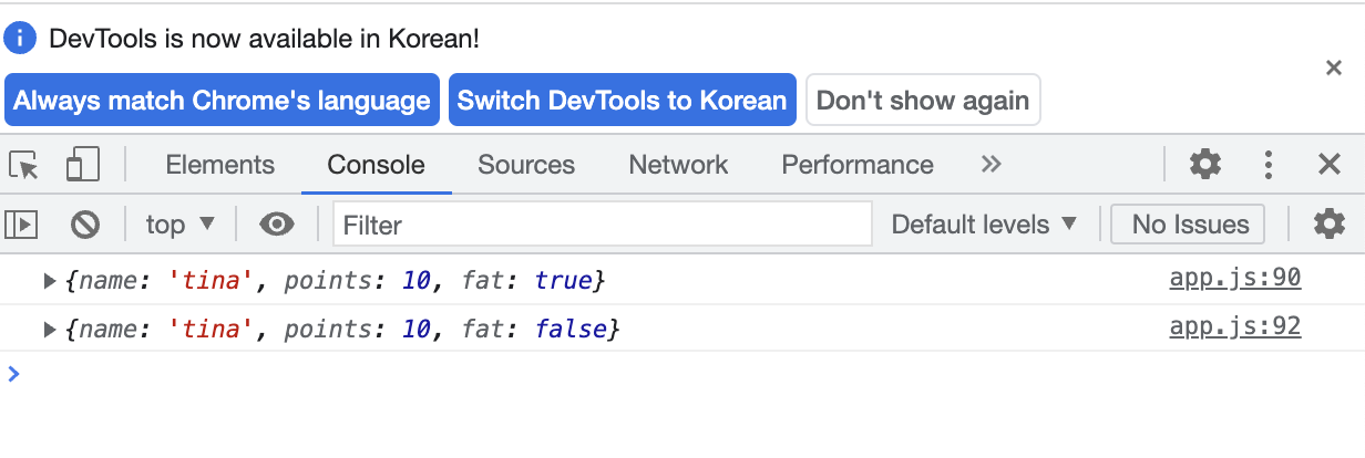 그러나 지금은 오브젝트 내부의 무언가를 바꾸는 것이지 object는 동일하다.