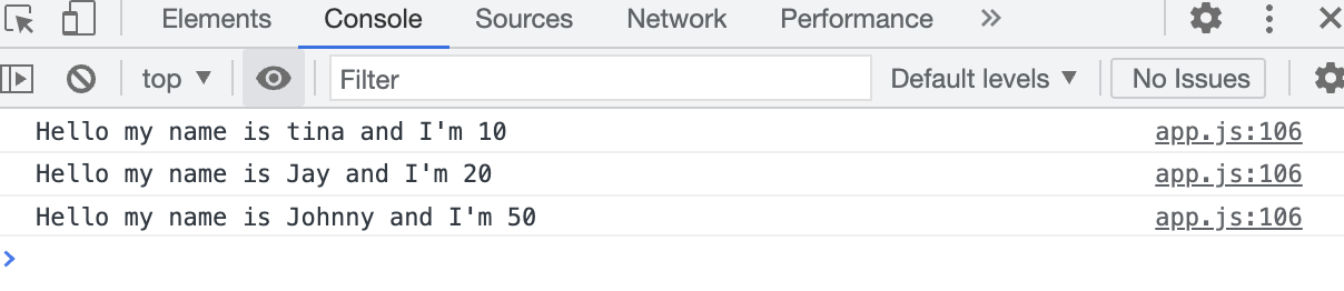 console.log("Hello my name is " + nameOfPerson +" and I'm " + age);
