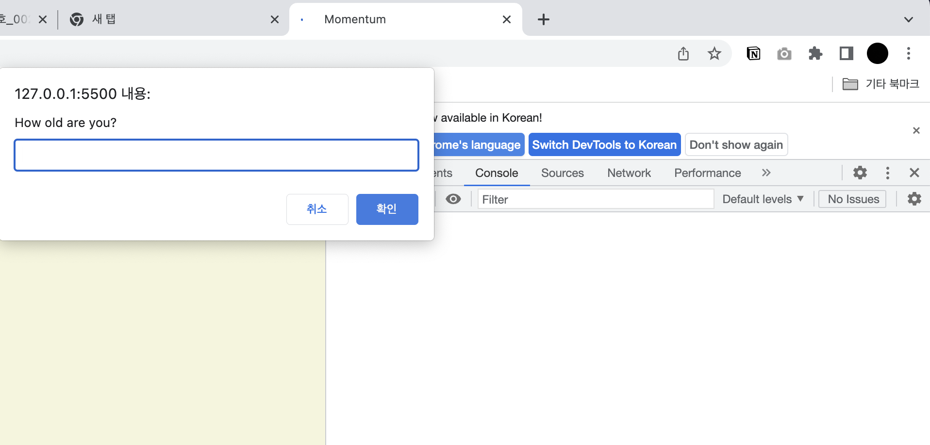 - 어떤 브라우저는 prompt로 생기는 팝업을 제한하기도 함.