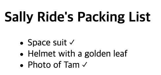 만약 isPacked가 true라면(then,?) name+' '✓ 를 render 해라