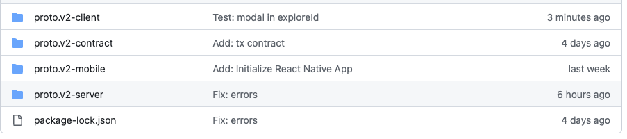 front-end 폴더(client), back-end 폴더(server), contract 폴더(contract), react-native 폴더(mobile).