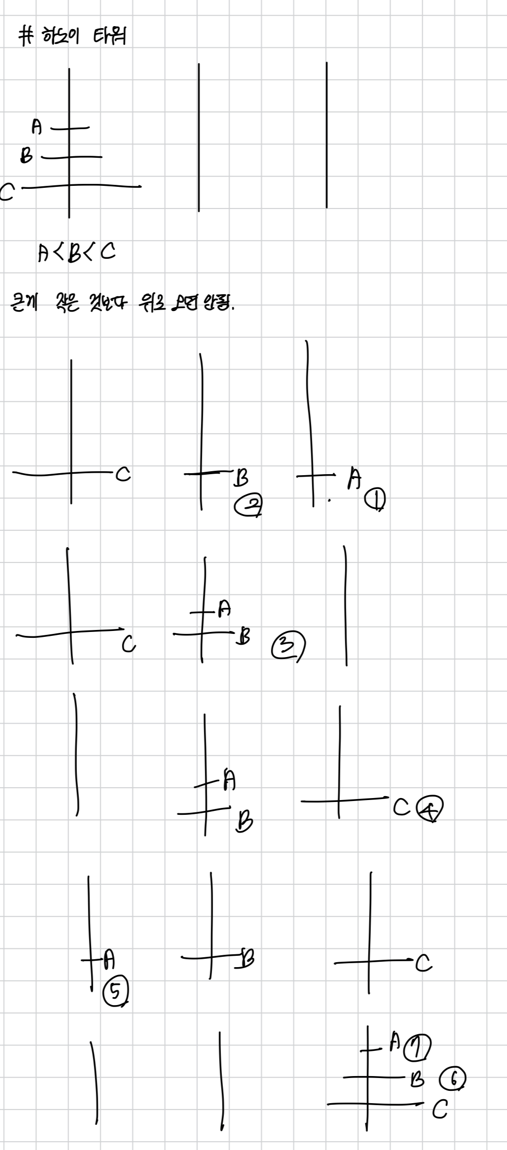 여기서는 원반 하나하나를 A,B,C라 설정했다.