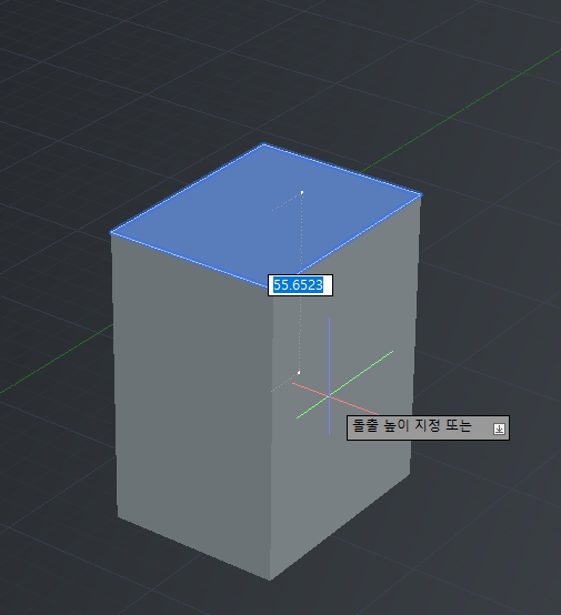 [돌출 높이 지정]에 양수를 입력하면 위로 올라가고