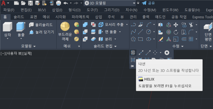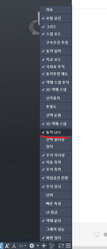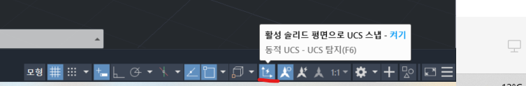 여기서 저 빨간색으로 밑줄 친 아이콘을 켜주면 동적 UCS가 실행된다.