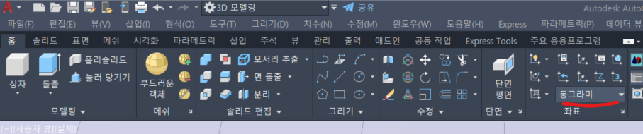 내가 만든 UCS를 저장하면 (동그라미 라고 저장했음)