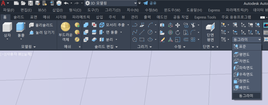 현재 와이어프레임 밀도: ISOLINES=4, 닫힌 윤곽 작성 모드 = 솔리드
