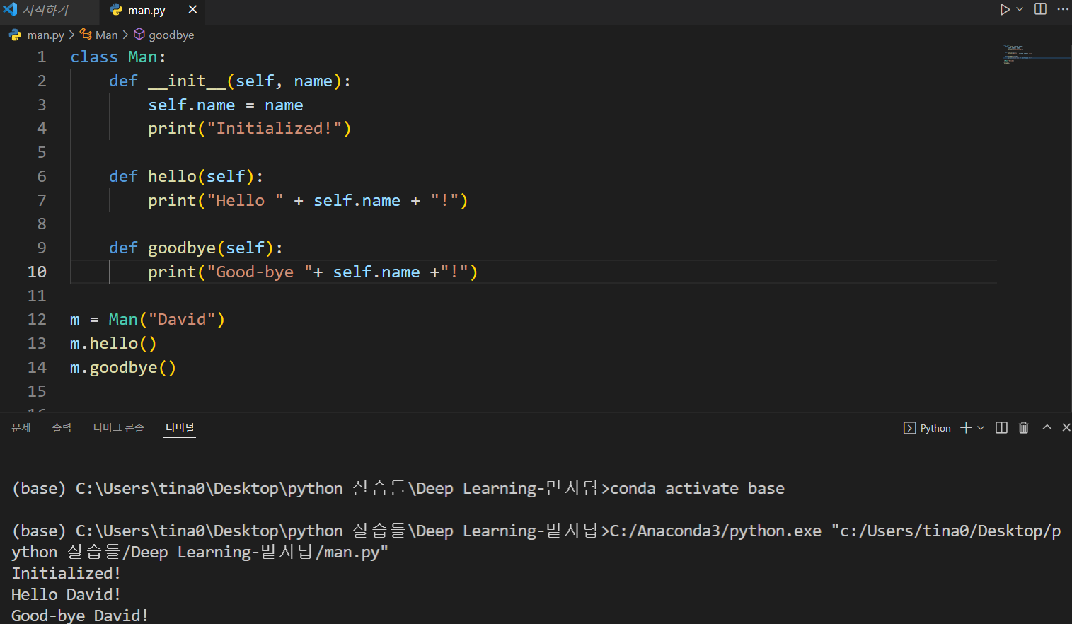 VSC에서는 Tab을 써도 무관하지만 파이썬 인터프리터에서는 space 4번을 쓰는 게 나을 듯 하다.
