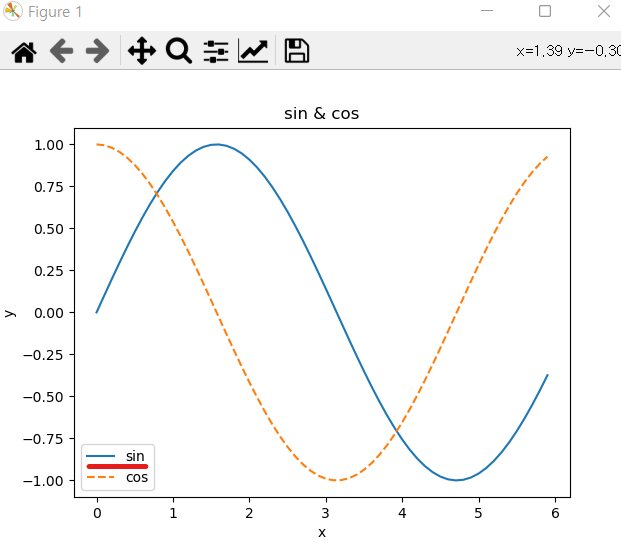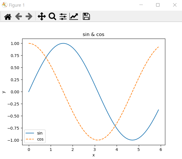 1번에서 그린 sin 그래프에 cos 함수도 추가로 그려보자.