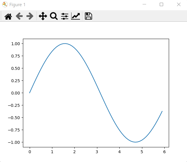 sin 함수의 주기가 2π(약 6.28)이니 그래프는 맞게 그려졌다고 볼 수 있다.