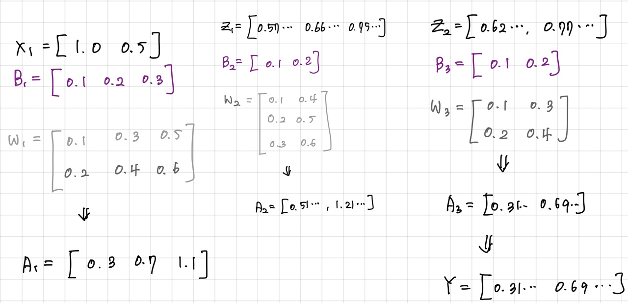W1,W2,W3 = network['W1'], network['W2'], network['W3']