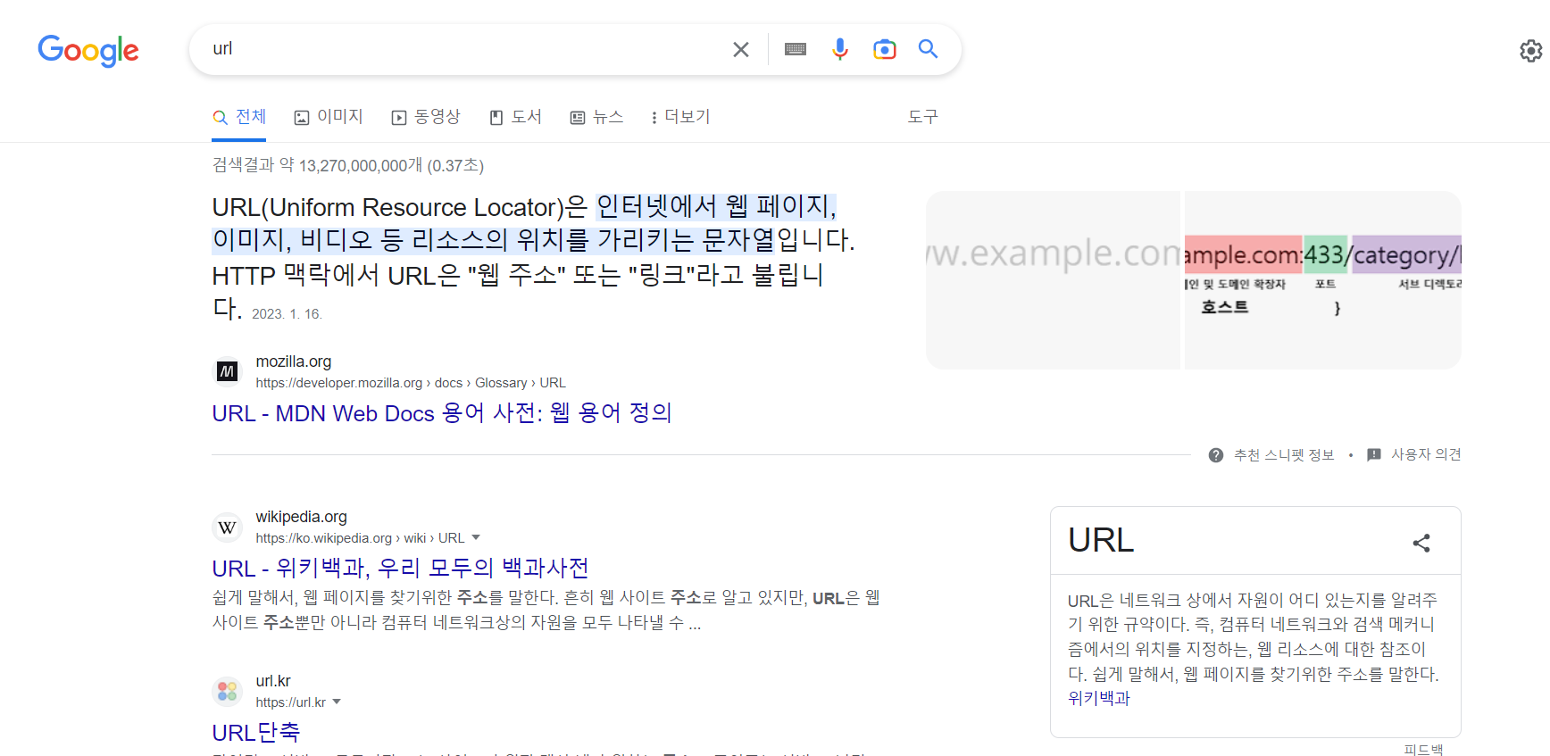 - 이 경우는 검색창에 'url'이라는 검색어를 입력한 것이다.