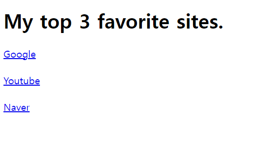 bookmark.html 을 만들고 내가 가장 자주 찾는 사이트 3곳의 즐겨찾기를 만들어보았다.