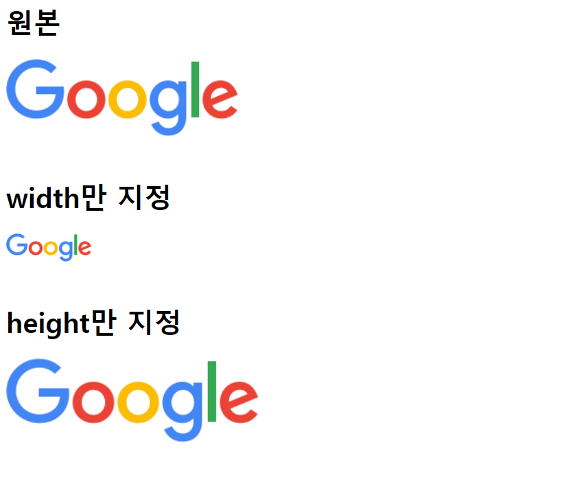 -width 속성이나 height 속성 둘 중 하나만 지정하게 되면, 나머지는 원본 크기 비율에 따라 자동 조절됨.