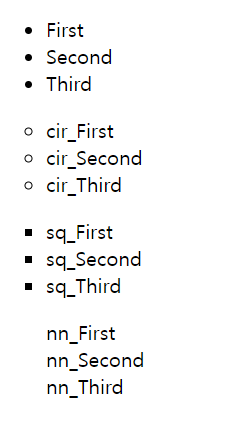 - style 속성에 list-style-type 값으로 글머리 기호의 종류 설정
