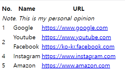 - <li>로 지정된 아이템(list item)들에 글머리 기호를 매겨 표시